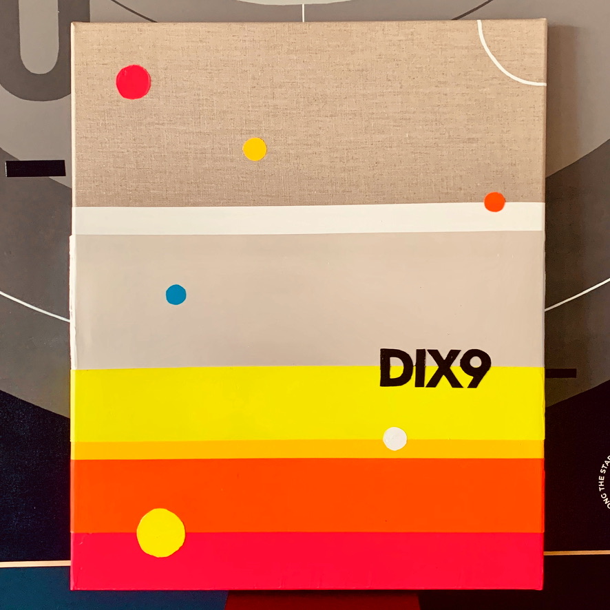 Designer industriel et directeur artistique, Nicolas développe une peinture abstraite inspirée par l’art concret, le design graphique et la culture électro underground. Saxophoniste jazz et producteur de musiques électroniques, il transpose rythmes, textures et silences dans ses toiles. Certaines œuvres sont conçues comme des pochettes de vinyles, d’autres peintes directement sur disque. Chaque composition est une balise spatio-temporelle, une mémoire graphique du réel, un dialogue avec la lumière et la nature.